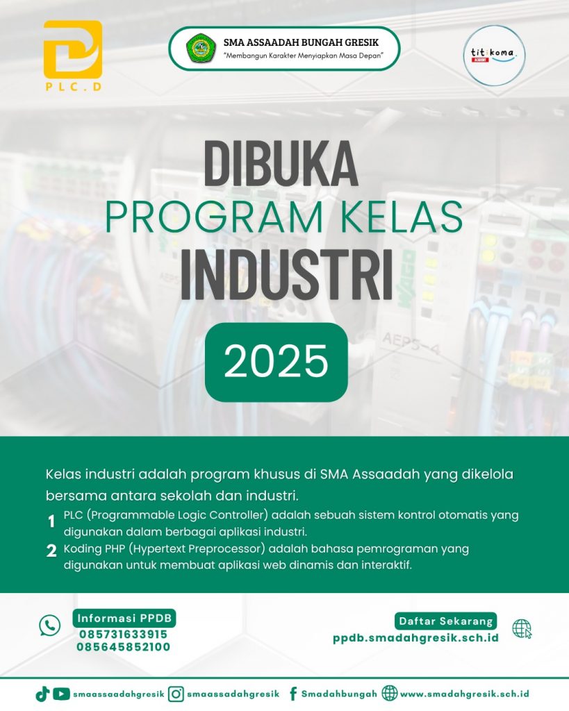 Kelas Industri merupakan hasil kerja sama antara SMA ASSA’ADAH dan mitra dari dunia usaha dan dunia industri, yang bertujuan untuk menyiapkan siswa agar siap kerja, adaptif, dan kompetitif di era Industri 6.0.