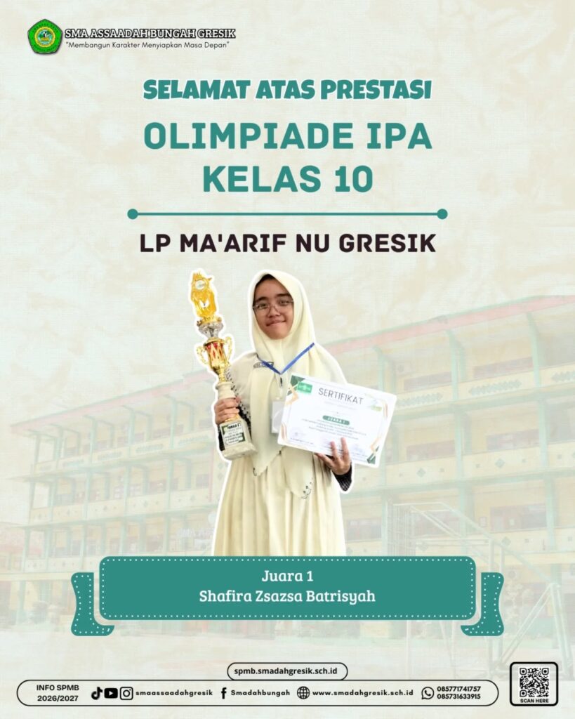 #prestasi#olimpiademipas#SMAAssaadah#smassaadahgresik#SmadahBungah YPPQomaruddin pondokqomaruddin